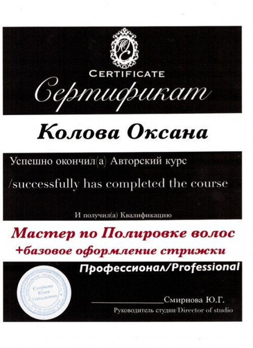 Квалификация: парикмахер-универсал.